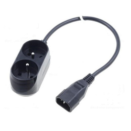 Prodlužovací přívod 2x230V CEE7/5 pro připojení do UPS s konektory IEC 320-C14. Počet výstupních zásuvek: 2 Délka kabelu: 30cm Maximální napětí: 250V Maximální proud: 10A.Parametry produktu