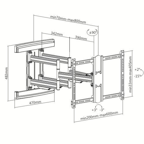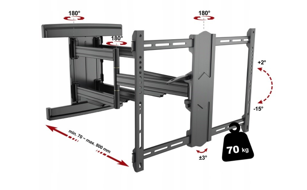 Profesionální držák na televize Fiber Novelty NostonProfesionální držák na televize 43-90", vzdálenost od zdi 70-800mm, otáčení +/-75°, naklápění +2°/-15°, VESA 200x100 až 600x400, nosnost 70kg, kryty kabeláže, korekce roviny, posun nástěnného úchytu, nejvyšší kvalita.