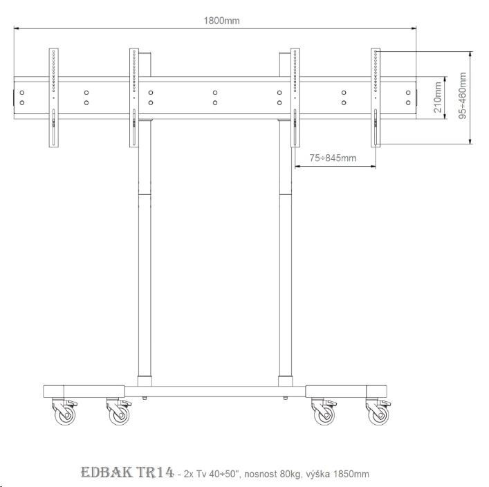 Profesionální stojan na 2 Tv 40-50" vedle sebe, vhodný na prezentace, výstavy, konference, EDBAK TR14 - držákProfesionální stojan na 2 Tv 40-50" vedle sebe, vhodný na prezentace, výstavy, konference.