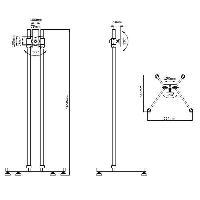 Profesionální stojan na monitor Tv Edbak SV52Statický stojan na Tv nebo monitor 17-43", výškové polohování 300-1650mm, otáčení +/-60°, náklon +/-60°, pivot +/-360°, VESA 75x75 a 100x100, nosnost 25kg.