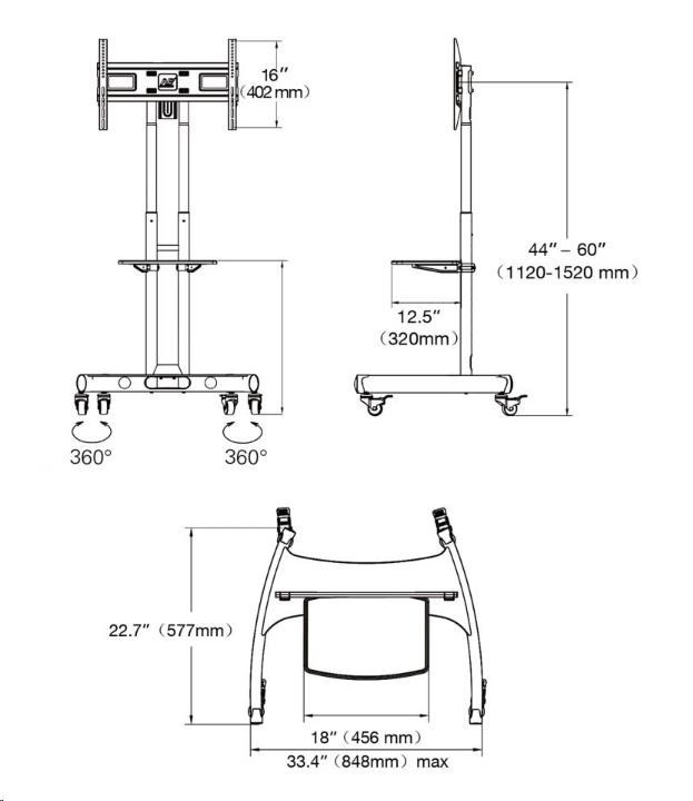 Televizní stojan určený nejen pro komerční účely, nejvyšší kvalita a krásný design. Stojan je určen pro zavěšení televizorů s úhlopříčkami 32" - 65" všech typů i značek. Dodáván je včetně poličky na příslušenství, kterou lze stejně jako stojan výškově polohovat.