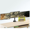 Profesionální stolní držák na 3 monitory Fiber Mounts M8C11 Plně nastavitelný kancelářský držák pro zavěšení tří monitorů 15-29", profesionální provedení, VESA 75x75 a 100x100, nosnost 21kg Profesionální systém pro uchycení a plnohodnotné polohování tří monitorů - otáčení do stran, náklon, délkové nastavení, rotace obrazovek. Držák podporuje VESA standardy 75x75 a 100x100. Maximální hmotnost monitoru 7kg (celková 21kg). Držák splní nároky každého uživatele. Profesionální stolní držák do kanceláře na 3 monitory Fiber Mounts M8C11 Technické údaje: celková nosnost 21kg (3 x 7kg) podpora VESA standardu 75x75 a 100x100 doporučená úhlopříčka monitorů 15" až 29" výškové polohování každého ramene 225mm až 575mm rotace obrazovek - možnost nezávislého otočení každého monitoru na šířku nebo na výšku nastavení vzdálenosti krajních monitorů možnost nastavení monitorů do příčky nebo do paraboly uchycení na stolové desky o průměru 10mm až 50mm stolový úchyt má integrované přípojky USB 3.0 systém vedení kabeláže materiál hliník a ocel barevné provedení černé záruka 5 let Stolní držák na 3 monitory Fiber Mounts M8C11 Držák na 3 monitory M8C11 podporuje VESA standardy: VESA 75x75 VESA 100x100 Profesionální držák na tři monitory s plnohodnotným polohováním. Držák je vhodný do kanceláří, pracoven, firem ale i domácnosti..