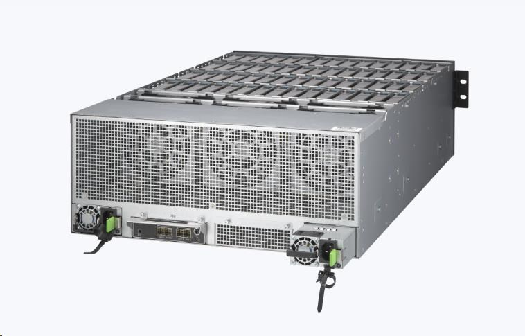 - Kapacita na úrovni PB na šasi: Do kompaktního 4U šasi lze nainstalovat až 60 SAS/SATA pevných disků, čímž se dosáhne efektivní kapacity přes 1 PB. Poznámka: Vyžaduje pevné disky 24 TB (nebo vyšší) a závisí na konfiguraci RAID.