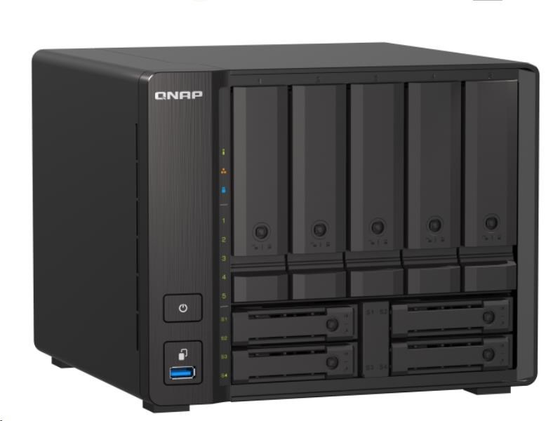 | Pozice pro diskové jednotky | 5 x 3,5" + 4 x 2,5" Systém se dodává bez HDD/SSD. Seznam kompatibilních disků HDD/SSD najdete na stránce https://www.qnap.com/compatibility/ |