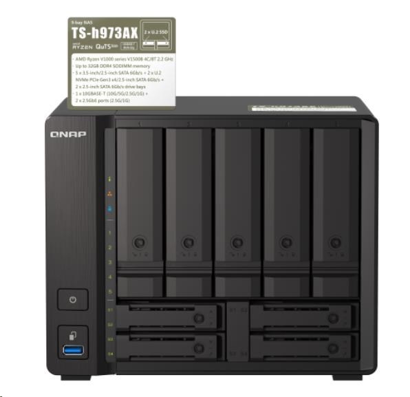 QNAP TS-h973AX-32G (4C/RyzenV1500B/2,2GHz/32GBRAM/9xSATA/2x2,5GbE/1x10GbE/4xUSB3.2)