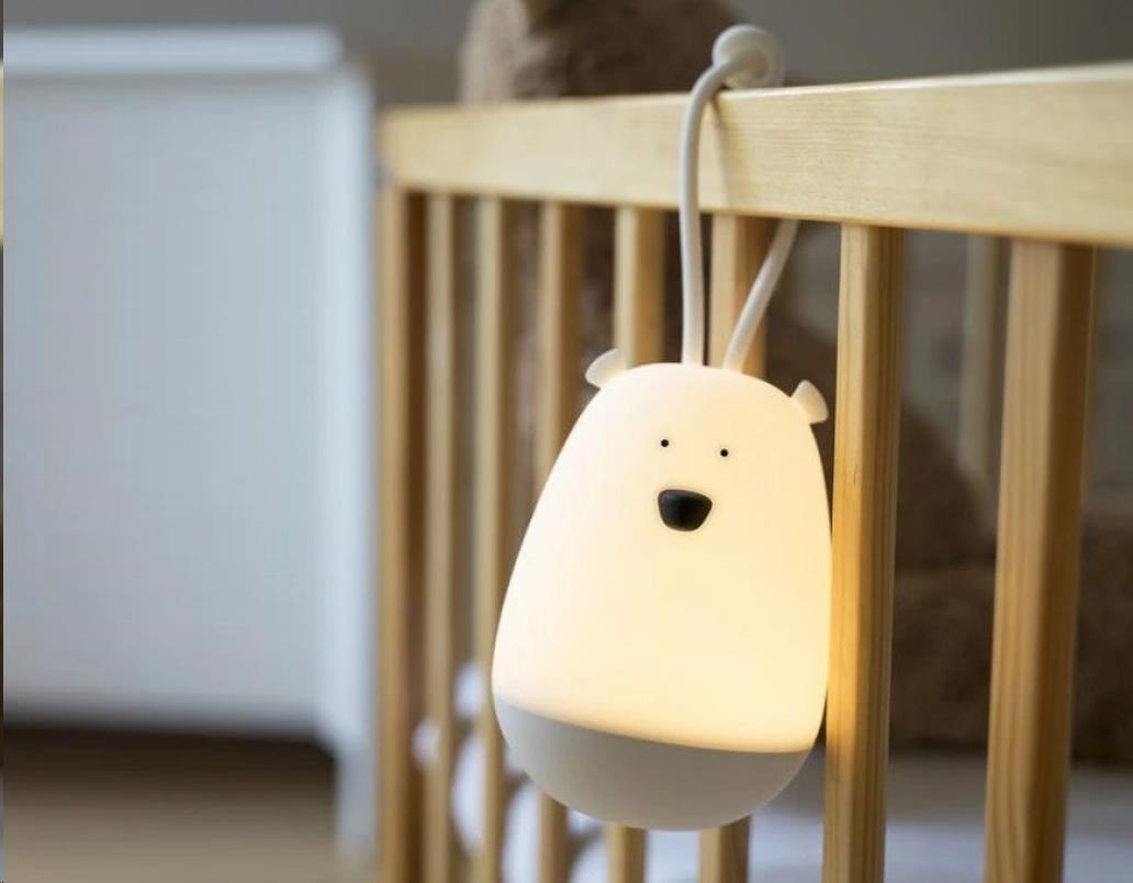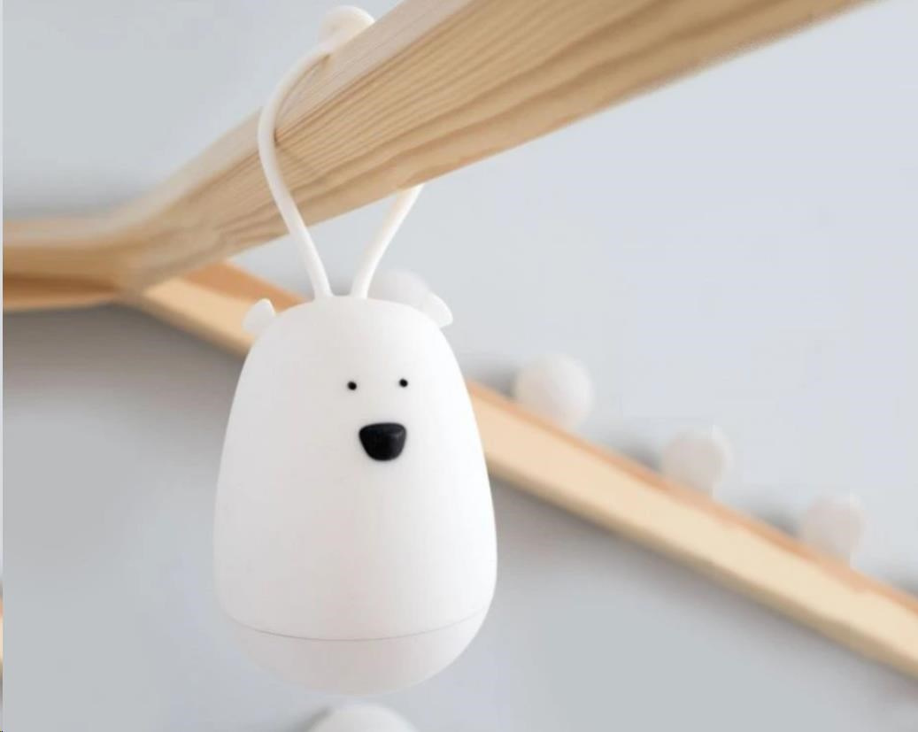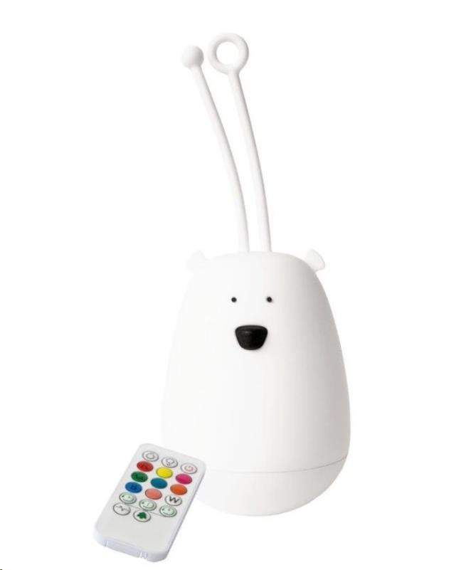 Lampička v podobě roztomilého medvídka, vyrobená z měkkého, bezpečného, certifikovaného a zdravotně nezávadného silikonu, je ideální první lampičkou i pro nejmenší děti, nočním světýlkem i snadno přenosnou lampičkou pro noční návštěvy toalety, na cesty. Dětskou lampičku jednoduše pomocí silikonové spony připevníte na rám postýlky a stejně jednoduše ji v případě potřeby sundáte.