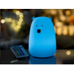 Pokud chcete změnit barvu světla, stačí na lampičku poklepat, když je zapnutá. Poklepejte - barva světla se postupně mění každé 3 sekundy; poklepejte po druhé - barva se zastaví; při třetím poklepáním na medvěda světlo zhasne. - Medvídek změní barvu poklepáním, jas i barvu můžete upravit pomocí dálkového ovladače.