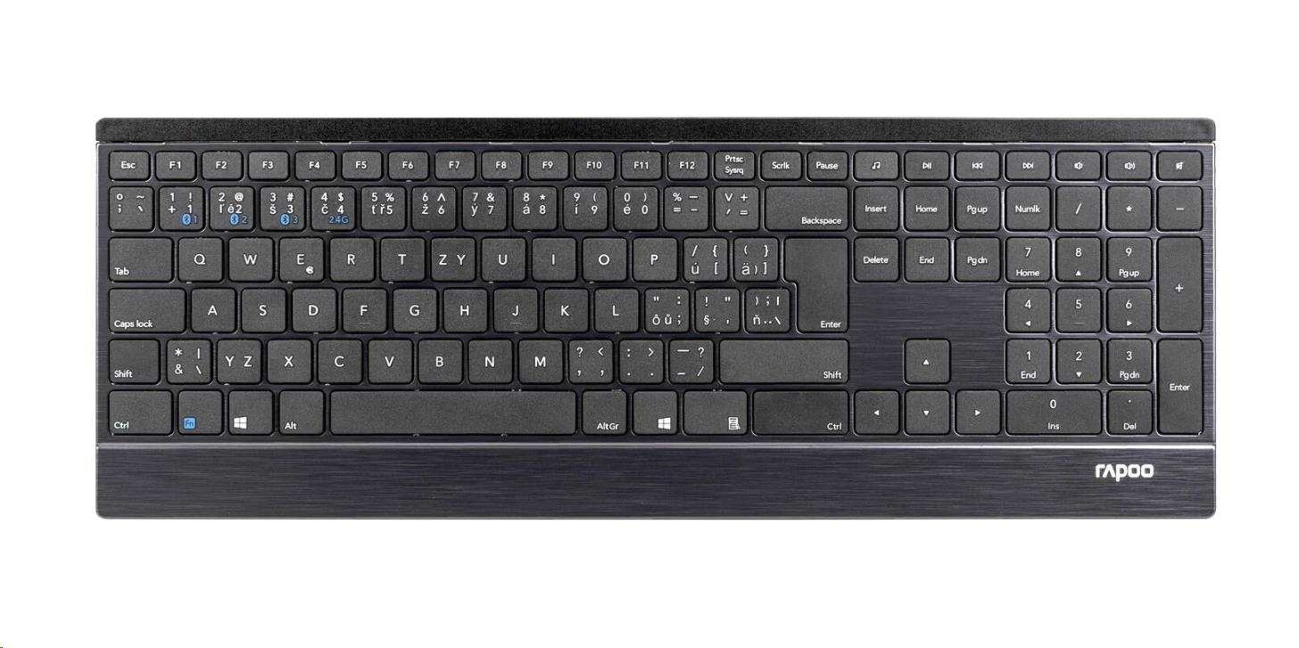 Rapoo E9500M multi-mode bezdrátová ultra-slim klávesnice černá CZ/SK