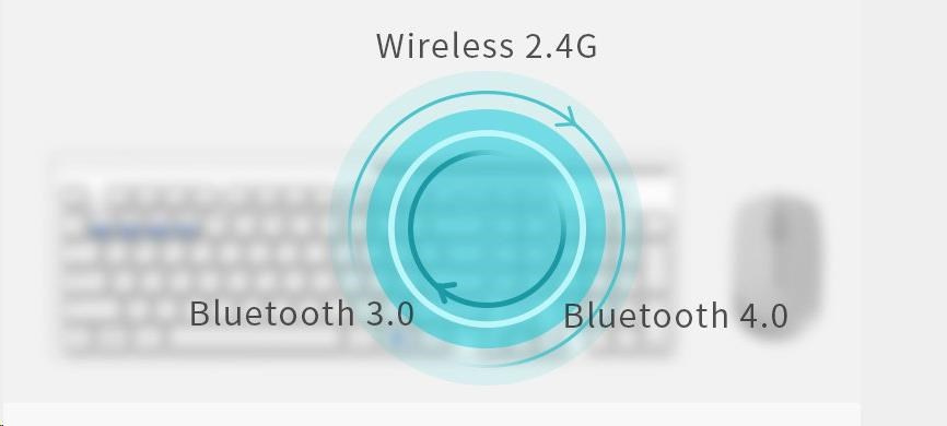 Inteligentní přepínání mezi Bluetooth 3.0, 4.0 a 2.4G zajišťuje stabilní připojení bezdrátového přenosu. I nadále můžete používat myš bez ohledu na nedostatek USB portu nebo při ztrátě přijímače.
