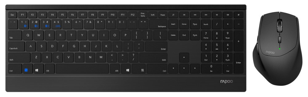 Tato ultratenká sada myši a klávesnice nabízí špičkové materiály se stylovým designem a komfortem užívání. Tělo klávesnice vyrobené z nerezové oceli a hliníkové slitiny je nejen pevné a odolné, ale zároveň dodává pracovnímu stolu určitý styl. Sada 9500M je nejen vyspělá konstrukcí, ale také funkcionalitou. Nabízí vícerežimovou technologii připojení firmy Rapoo – prostřednictvím spolehlivého bezdrátového vysílače 2,4 GHz, Bluetooth 3.0 a 4.1 – umožňuje současné připojení a přepnutí několika zařízení (s automatickým párováním). Myš v této sadě je vybavena plně nastavitelným vysoce výkonným optickým senzorem 600 až 1600 DPI. Navíc energeticky úsporná technologie firmy Rapoo zajišťuje životnost baterií až 12 měsíců, takže minimalizuje potřebu jejich výměny.