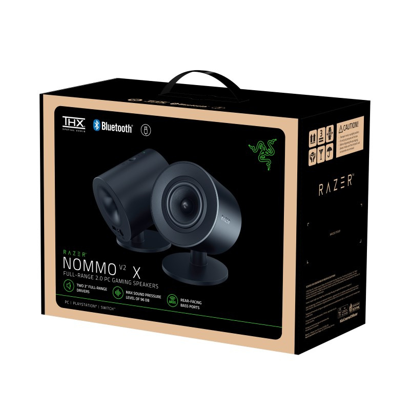 RAZER reproduktor Nommo V2 X, 2.0 ReproduktoryZpůsob použití:K mobilu / PC; Barva reproduktoru:Černá; Typ připojení:Bluetooth, USB-C; Hmotnost (g):1300.