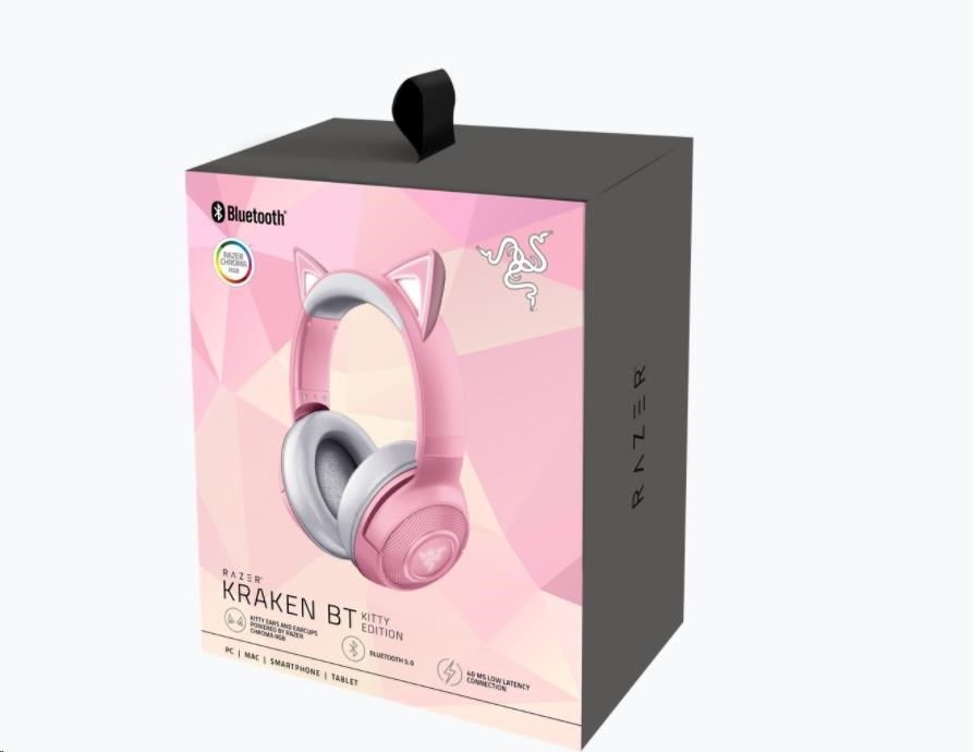 RAZER sluchátka Kraken BT Kitty Edition, Wireless Bluetooth HeadsetTyp sluchátek:Plná; Rozhraní sluchátek:Bluetooth; Vlastnosti sluchátek:Ovládání hlasitosti.