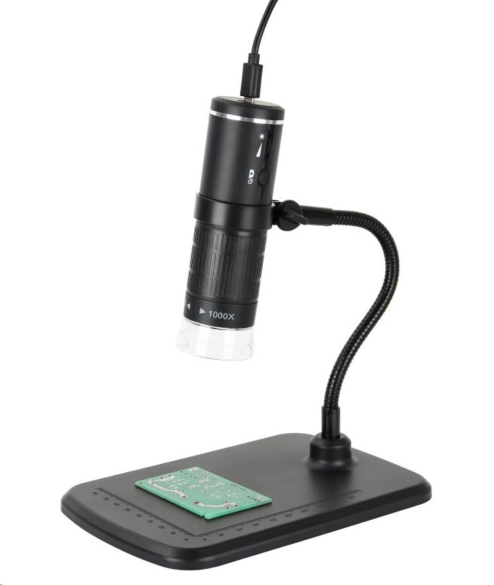 DigiMicroscope WiFi 2.0 s praktickým uchycením "husím krkem" k podložce, WiFi připojení pomocí Free APP pro Android a iOS nebo USB2 k PC/MAC. Rozlišení FullHD JPG/MP4, zvětšení 50-1000x, osvětlení 8 LED s regulací, interní Li-Ion, USB2, rozměry 35x125 mm, hmotnost 90g. Flexibilní použití díky bezdrátovému připojení a internímu Li-Ion akumulátoru. Včetně kovového flexi-držáku s podložkou a USB kabelu.