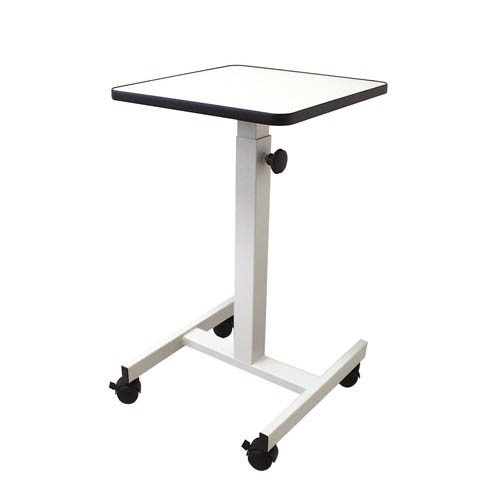 Stolek pod zpětné projektory nebo dataprojektory bez odkládací desky s nastavitelnou výškou 62-100cm na kolečkách (pracovní deska 39x38cm /nosnost do 25kg, celková hmotnost 7,5kg, barva bílá)..