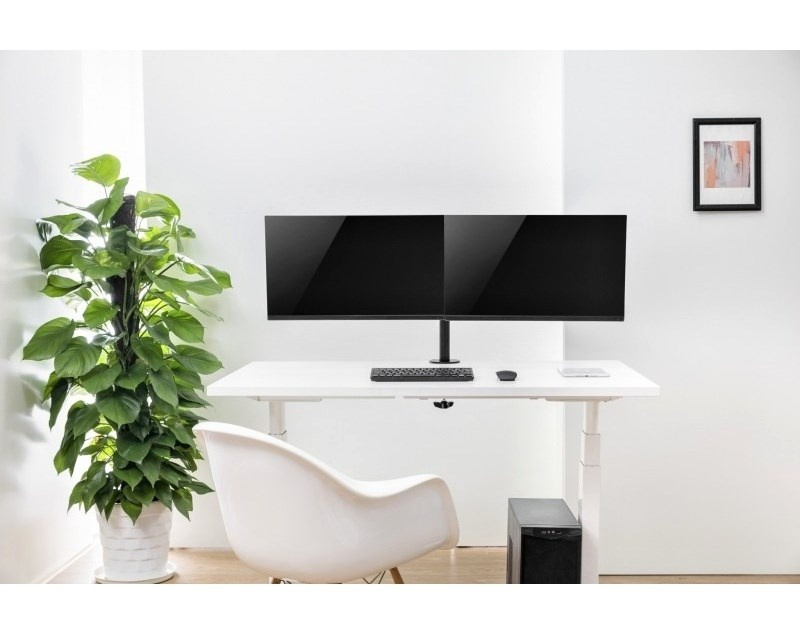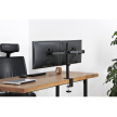 Stolní držák s upevňovací klemou pro 2x LCD monitor s uhlopříčkou 13"- 32" a hmotností maximálně 8kg na rameno. 2x 39,9cm rameno - 3x pant, vertikálně výklopný +45°/-45° a horizontálně +90°/-90°, otočení monitorů o 90°, výška středového sloupku 44,3cm. Uchycení VESA: 75x75, 100x100. Možnost uchycení kabeláže..