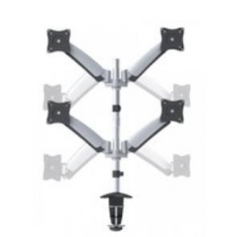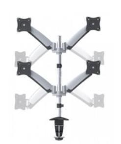 Stolní hliníkový držák s upevňovací klemou pro 4x LCD monitor a menší TV s uhlopříčkou 13"- 27 a hmotností maximálně 9kg na rameno. Uchycení VESA: 75x75, 100x100. Popis: 4x 60cm rameno - 3x pant, vertikální výtah +90-40° GasSpring, horizontálně otočný 360°..