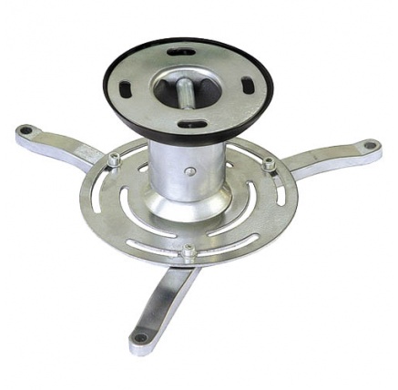 Stropní hliníkový držák na dataprojektory - vzdálenost od stropu 13 nebo 20cm (dva distanční prvky), přístroj lze otočit o 360° a naklonit +/-15°, maximální zatížení 10kg, kabelový prostup, stříbrný. Univerzální systém uchycení dataprojektorů (rozsah 13-32 cm)..