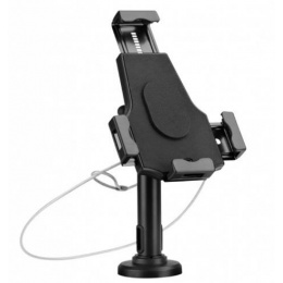 Bezpečnostní uchycení pro tablety 7,9-10,5" na stůl a na stěnu. Nastavitelný sklon tabletu rozmezí +70/-70° a navíc otočný 360°, fixace vruty ke stolu - 330° otočné kolem osy, hmoždinky do zdi, ocelové lanko proti odcizení, kabelový prostup, černý..