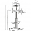 Moderní televizní stolek na Plasma a LCD TV s uhlopříčkou 37"- 70" (94-178cm) a hmotností maximálně 50kg. Středová teleskopická nosná tyč na kolečkách, držák otočný o 90° a vertikálně výklopný +5°/-12°, horní výškově nastavitelná plocha pro kameru, polička, AluDesign, barva stříbrná. Uchycení VESA: 200x200, 300x300, 400x200, 400x400, 600x400..