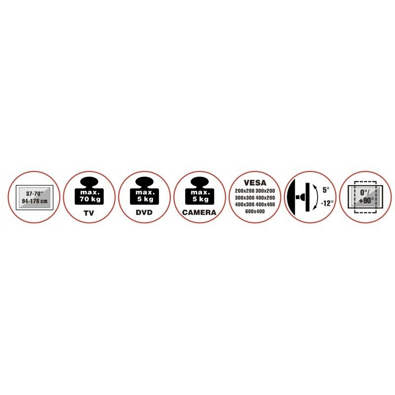Držák na Tv NB P65Profesionální držák Tv 43" - 85", otáčení do stran až +/- 75°, naklápění +5° / -8°, vzdálenost od zdi 60 - 500mm, VESA standardy 200x100 až 600x400, korekce roviny +/- 4°, systém vedení kabeláže, nosnost 68,2 kg.