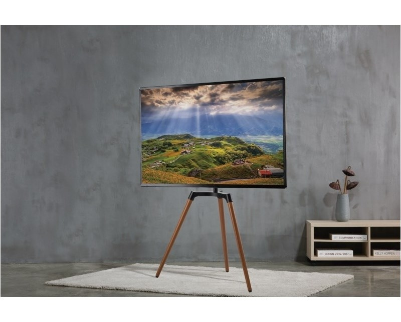 Unikátní televizní stolek na Plasma a LCD TV s uhlopříčkou 50"- 65" (127-165cm) a hmotností maximálně 35kg. Designová kombinace černé kovové konstrukce + 3x dřevěné nohy (ořech). Propracované tvary a vedení kabeláže pro maximální estetický zážitek. Uchycení VESA: 200x200, 300x200, 300x300, 400x200, 400x400..