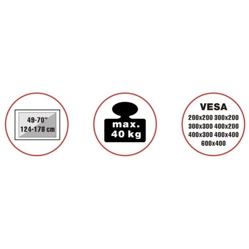 Unikátní televizní stolek na velké LCD TV s uhlopříčkou 49"- 70" (124-178cm) a hmotností maximálně 40kg. Designová tmavá kovová konstrukce s efektním Multicolor RGB LED osvětlením s dálkovým ovládáním. Propracované tvary a vedení kabeláže pro maximální estetický zážitek. Uchycení VESA: 200x200, 300x200, 300x300, 400x200, 400x400, 600x400..