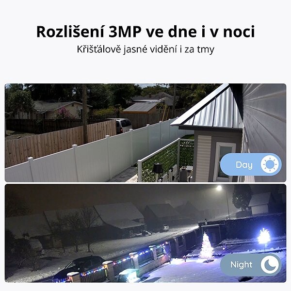 - Rozlišení videa: 2304 × 1296 (3 MP) při 15 FPS pro detailní sledování