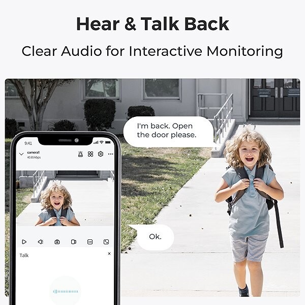 - Zvuk: Obousměrný zvuk umožňuje komunikaci v reálném čase přímo přes kameru