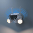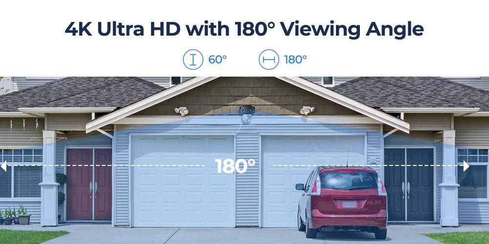 Floodlight Series F750W nabízí super široký pozorovací úhel 180° se dvěma čočkami. Pokrývá více oblastí. Obrazy zachycené dvěma čočkami jsou také dokonale spojeny do jednoho pro působivý vizuální zážitek.