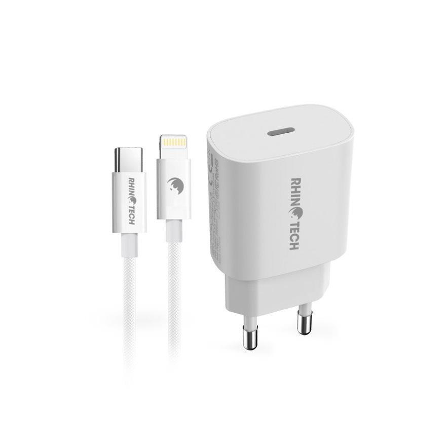RhinoTech praktický set rychlonabíjecího adaptéru (25W) a USB-C na Lightning kabelu (27W), pro bezpečné a rychlé nabíjení Vašeho zařízení.