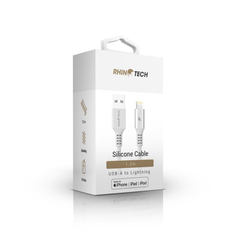RhinoTech LITE MFi kabel s nylonovým opletem USB-A na Lightning 1.2m stříbrná
