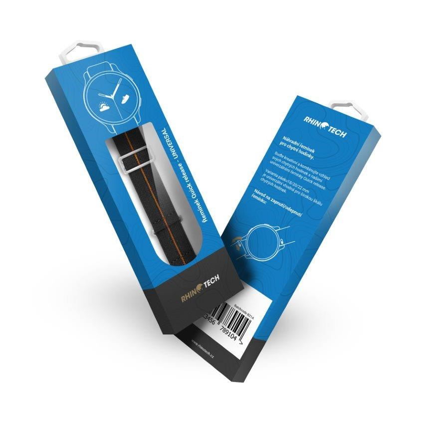 RhinoTech univerzální řemínek nylonový tah Quick Release 22mm černo-oranžový