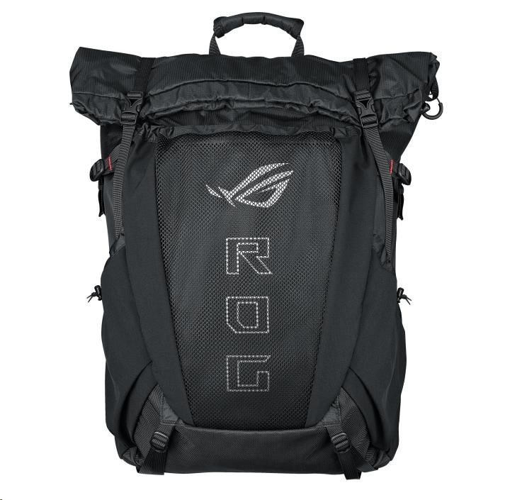- Praktický nastavitelný rolovací design: Herní batoh ROG Archer Ergo s nastavitelnou rolovatelnou svrchní částí o objemu 40 litrů a prostorem pro 18palcový notebook zajišťuje bezpečné uložení veškerého vybavení bez ohledu na to, kolik toho nesete.