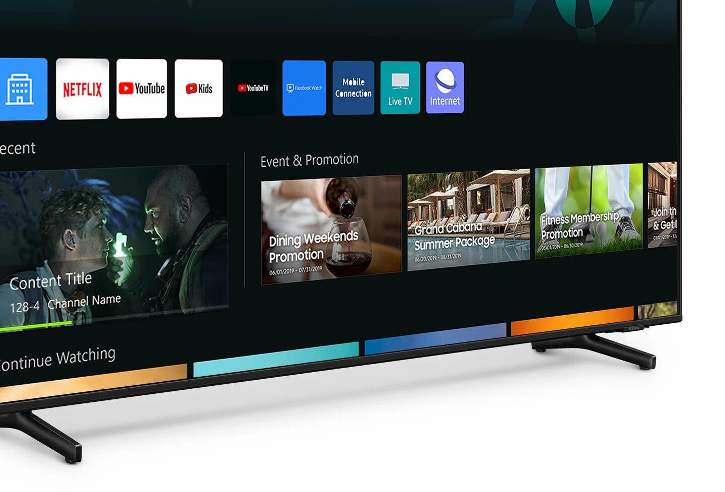 Smart Hub hostům nabízí jednoduchý přístup k různorodému obsahu, kteří si tak mohou nepřetržitě vychutnávat své oblíbené filmy nebo pořady na Netflixu – a to v maximálním pohodlí. Manažeři hotelu navíc budou moci domovskou obrazovku přidat různé propagační materiály.
