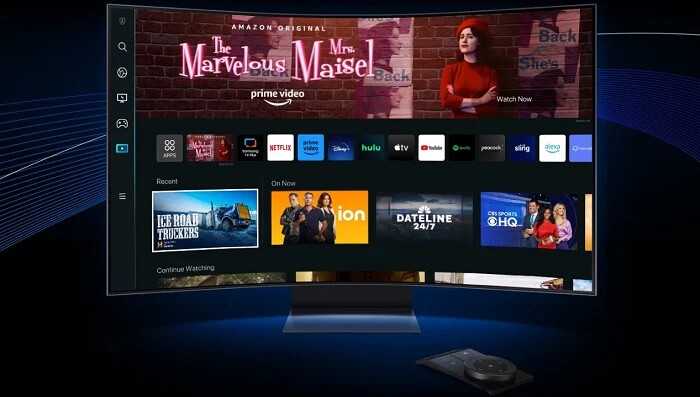 LCD monitor prohnutý, VA panel, úhlopříčka 55" UHD 3840 x 2160, obnovovací frekvence 165Hz, odezva 1ms,1x HDMI 2.0, 1x HDMI 2.1, sluchátkový jack, 2 USB porty, DP, Wi-fi. Zakřivení 1000R, nastavitelný stojan, AMD FreeSync Premium, HDR10+. Pozorovací úhly 178°/178°, kontrastní poměr 1 mil.:1. Rozměry se stojanem 1174,8 × 1102 × 379 mm, hmotnost 41,5 kg se stojanem.