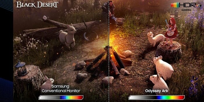 Samsung Odyssey Ark G97NC potěší perfektně živým obrazem. Poskytuje vysoký dynamický rozsah úrovní barev a jasu pro živější, přirozenější a výrazně detailnější zobrazení za všech světelných podmínek. Tento prohnutý herní monitor vás naprosto uchvátí, protože díky němu spatříte a zažijete pestrobarevný virtuální svět, který jste nikde jinde neviděli!
