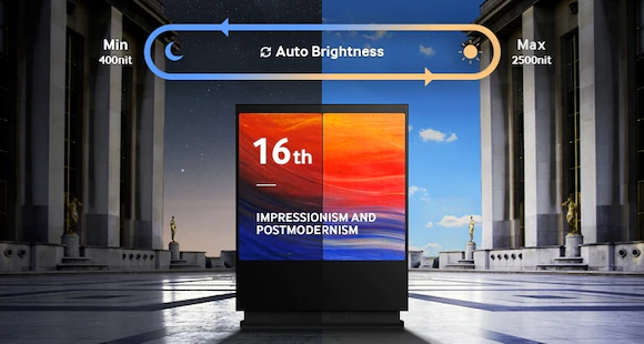 Prezentujte obchodní informace 24 hodin denně, i když je displej vystavený přímému i nepřímému slunečnímu světlu, a získejte spolehlivý nepřetržitý provoz. Digitální prezentační displeje SMART Signage řady OMD jsou mechanicky navrženy a interně testovány tak, aby jejich panel snášel vysoké teploty až 110 °C.