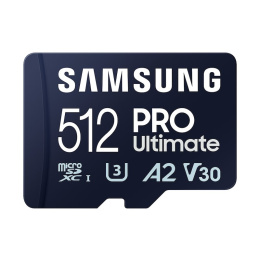 Samsung micro SDXC 512GB PRO Ultimate + SD adaptérTyp karty:Micro SDXC; Kapacita uložiště:512 GB; UHS:UHS-I; Video Class:V30; Application Performance:A2; Adaptér.