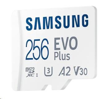 Samsung micro SDXC karta 256GB EVO Plus + SD adaptérTyp karty:SDXC; Kapacita uložiště:256 GB; Rychlost čtení min. (MB/s):160; UHS:UHS-I; Video Class:V30.