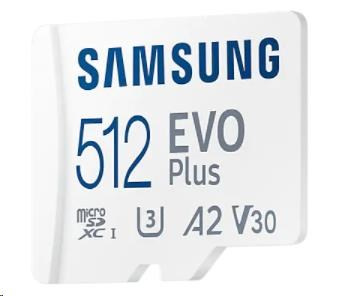 Samsung micro SDXC karta 512 GB EVO Plus + SD adaptérTyp karty:SDXC; Kapacita uložiště:512 GB; Rychlost čtení min. (MB/s):160; UHS:UHS-I; Video Class:V30.