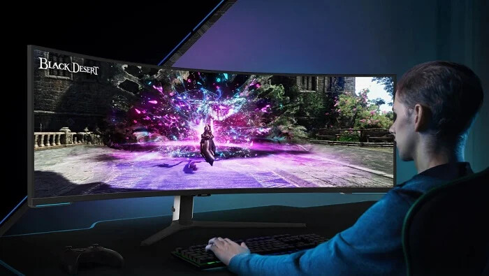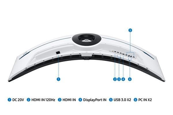LCD monitor prohnutý, zakřivený, s úhlopříčkou 57" a s DUHD rozlišením (7680 x 2160). Zakřivení 1000R, poměr stran 32:9, kontrast 2500:1, jas 420 cd/m2, doba odezvy 1 ms (GtG), pozorovací úhel 178° horizontálně i vertikálně, obnovovací frekvence maximálně 240 Hz. Připojení pomocí DP, HDMI, USB, výstup na sluchátka. Rozměry (se stojanem) 1 327,5 × 601,0 × 499,6 mm, hmotnost (bez stojanu) 19 kg.
