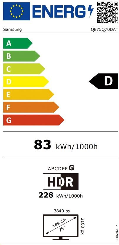 Máte k produktu dotaz? Zeptejte se nás.Hodnocení produktu Samsung QE75Q70D 75" TV, 4K Ultra HD, QLED, WiFi, Bluetooth 5.2, Quantum HDR, Tizen OS, Eco Sensor