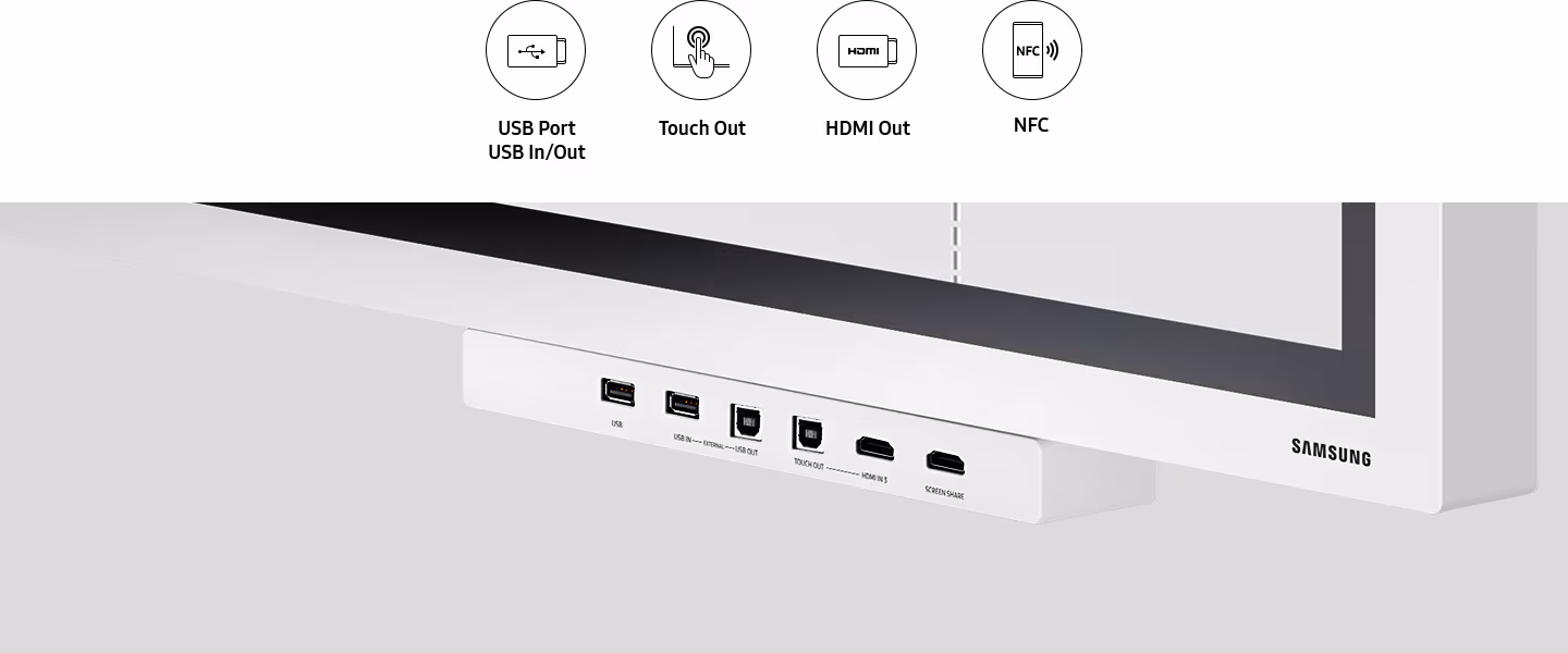 SAMSUNG Tray CY-TF65BRC flip 2Možnost připojení Samsung Flipu pomocí volitelného zásobníku umožňuje plně synchronizovaný a uživatelsky přívětivý zážitek ze spolupráce. Před obrazovkou můžete sladit svá osobní zařízení s centrální obrazovkou pro interaktivní zobrazení obsahu, poznámky a sdílení.