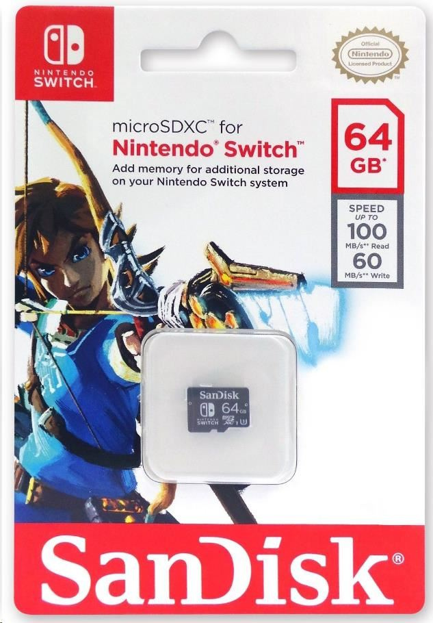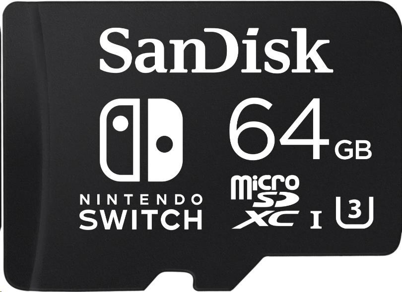 SanDisk MIcroSDXC karta 64GB for Nintendo Switch (R:100/W:90 MB/s, UHS-I, V30, U3, C10, A1) licensed Product