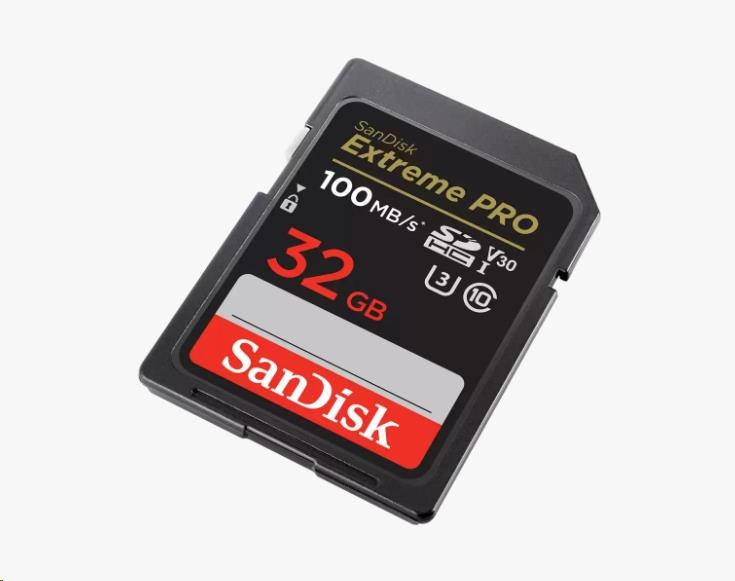 SanDisk SDHC karta 32GB Extreme PRO (100 MB/s Class 10, UHS-I U3 V30)Typ karty:SecureDigital Extreme; Kapacita uložiště:32 GB.