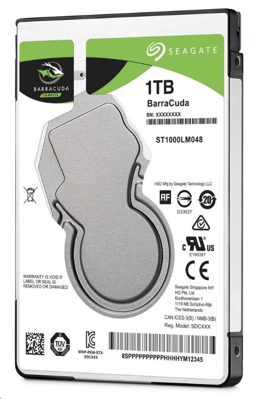 SEAGATE HDD 1TB BARRACUDA, 2.5", SATAIII, 5400 RPM, Cache 128MB, 7mmPoužití disku:Pro PC; Formát:2.5"; Rozhraní:interní Serial ATA III; HDD Kapacita (GB):1000; Otáčky HDD:5400; Typ disku:HDD; Velikost bufferu (v MB):128.