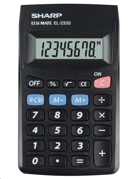 SHARP kalkulačka - EL-233SBBK - blisterPocket calculator with compact design, large LCD display(8 digits), square root and percentage calcu