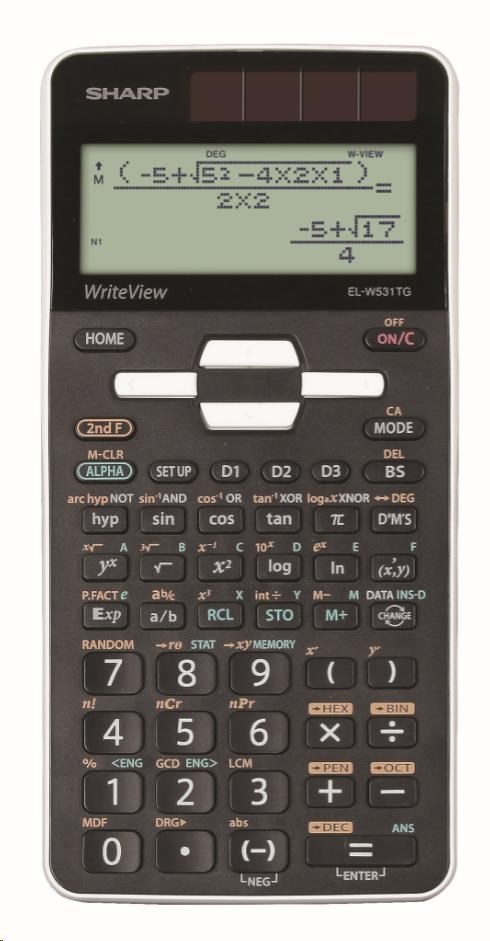 Vědecký kalkulátor EL-W531TG obsahuje 422 matematických funkcí a je vhodný zejména pro studenty středních škol. Bodový displej "WriteView" umožňuje zápis a zobrazení výrazů v obvyklém matematickém vyjádření, tedy stejně jako na papíře. Solární napájení šetří záložní baterii a pevný plastový kryt chrání kalkulátor před poškrábáním a pády.
