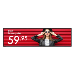 Tento prodloužený 42palcový displej, který poskytuje prostorově efektivní vizualizaci ve stísněných prostorech, jako jsou chodby a regály v prodejnách, nabízí výrazný ultra širokoúhlý poměr stran 16:4. Zatímco vysoká přizpůsobivost zahrnuje orientaci na šířku i na výšku, což je ideální pro oblast s omezeným prostorem, tvorba obsahu zůstává nadále jednoduchá a nenáročná. Obsah je ostrý a jasný s přesvědčivou čitelností i v pronikavě osvětleném prostředí s vysokou úrovní jasu 700 cd/m2 v kombinaci s povrchem tlumícím světelné odrazy. Moderní tenký design vytváří elegantní digitální povrch, který se dokonale hodí do okolní architektury a bezproblémově zapadá do každého prostředí.