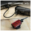 Světlo Buster RL 80 je vybaveno integrovanou lithium-iontovou baterií, která se nabíjí kabelem USB-C. Světlo se nabijí dvě hodiny. Odpadá tak nejen otravná výměna baterií, ale světlo zároveň šetří zdroje a je udržitelné.